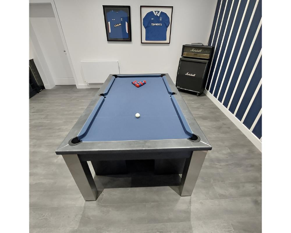 Discover the FMF Elixir, where adaptable luxury reshapes your living space. Its clean silhouette in a sophisticated Anthracite finish creates a refined dining table, setting the stage for memorable gatherings. With a seamless motion, it transforms to reveal a professional-grade pool table, engineered for the ultimate playing experience.